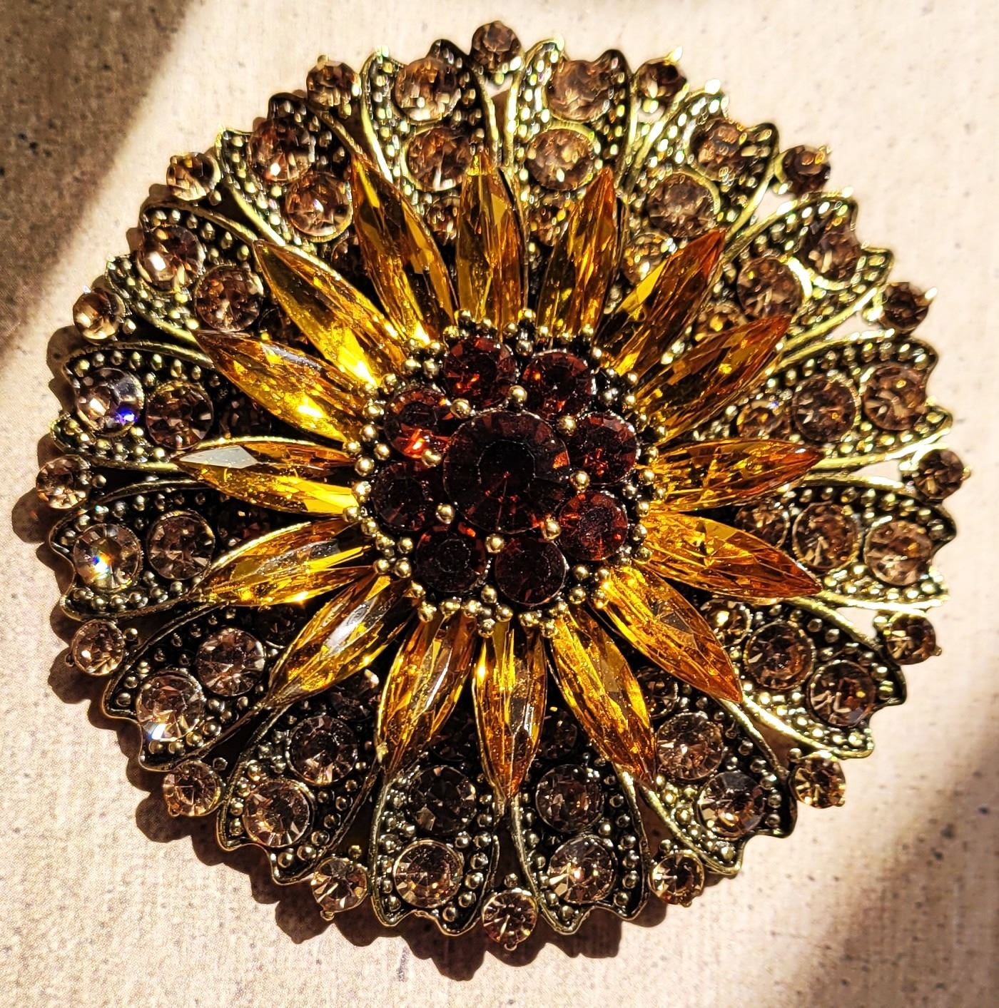 & GOLDEN YELLOW 2.5" DIAMETER BROOCH. JEWELERY