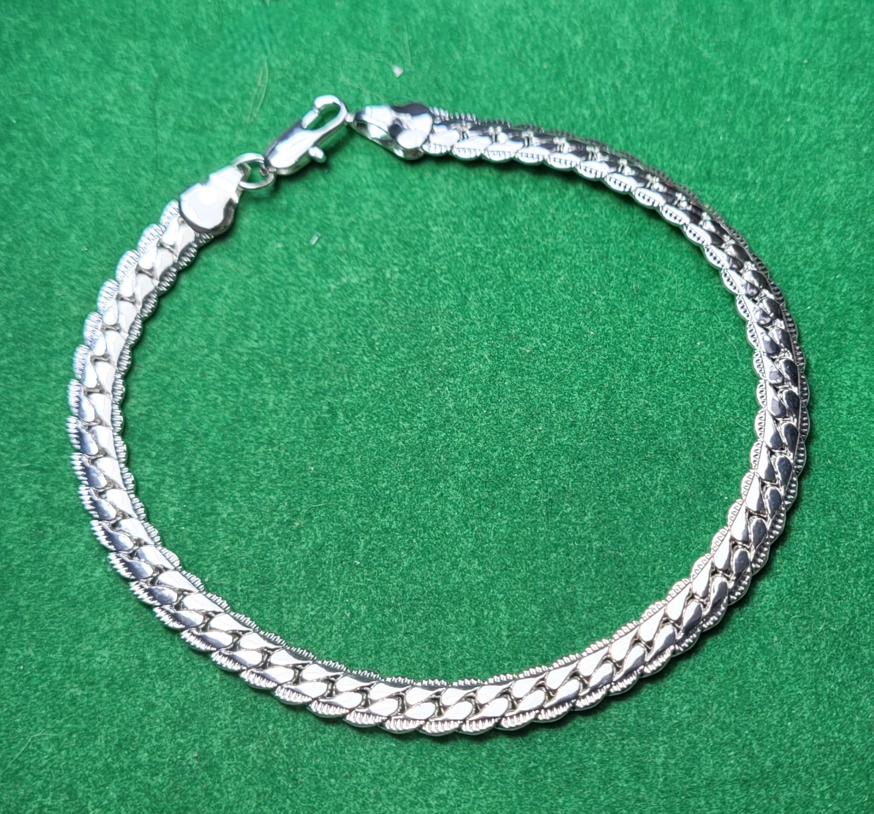 13) SILVER TONE FLAT 8.5" HERRING BONE BRACELET.