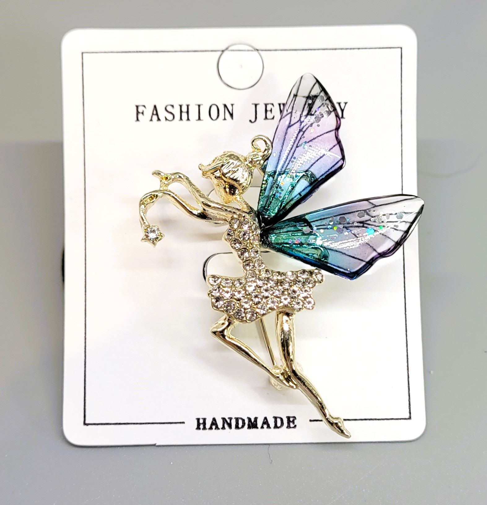 AND RAINBOW TITANIUM CRYSTAL WINGS, FAIRY BROOCH. JEWELLERY