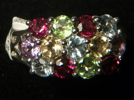13 STONES SILVER RING SIZE 8 CITRINE, AMETHYST, PERIDOT,GARNET