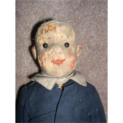 13" early Steiff man that has been loved and is well worn. He is straw stuffed and pictures tell the story. Luckily he still has the little metal button in his ear that says Steiff. He was made in Germany. I have no idea if clothing is original or not. This is how I bought him so this is how you now get him. He is from a smoke free environment. Buyer to pay $15 for shipping, insurance and handling. Thanks for viewing.