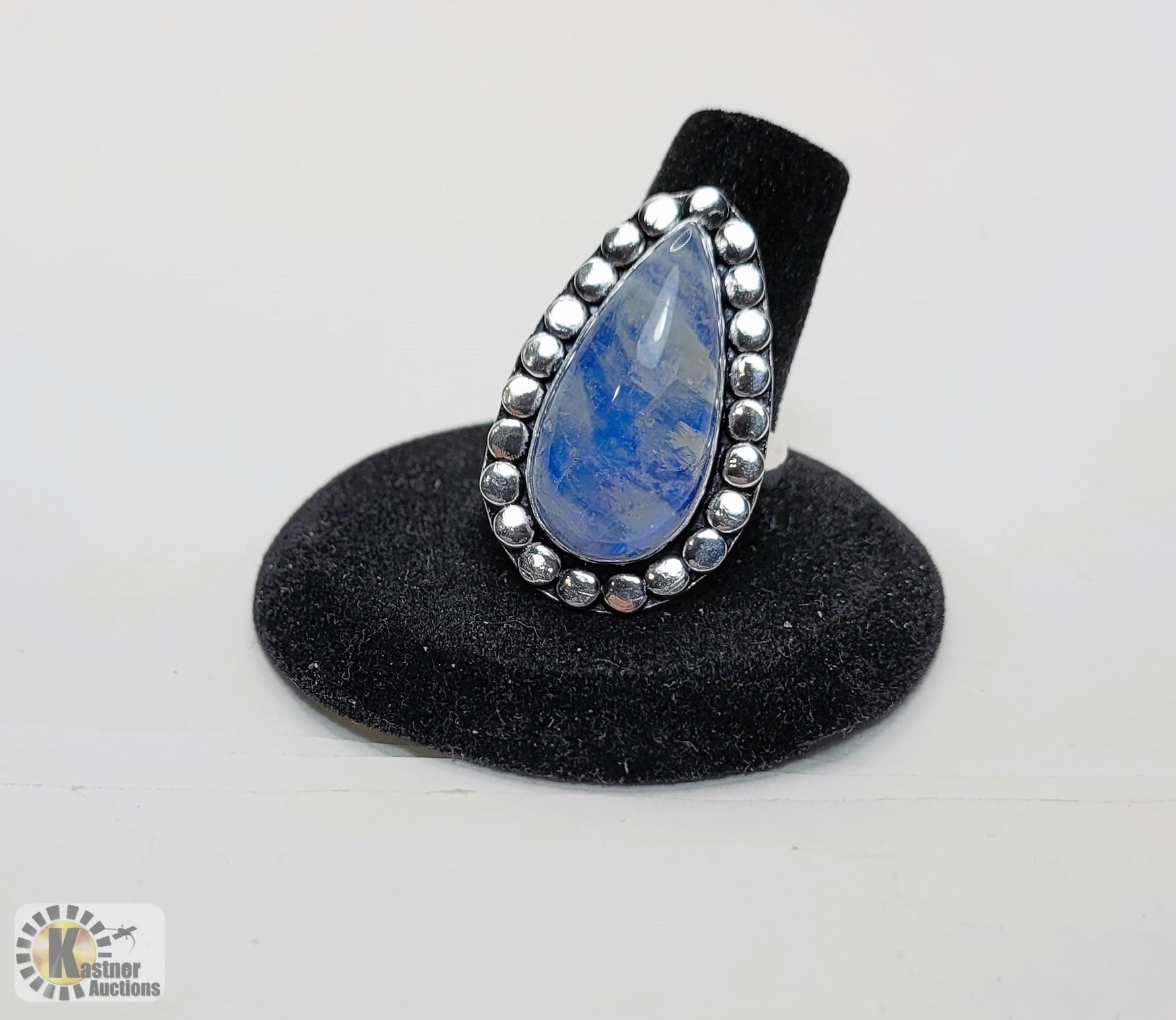 MOONSTONE RING SET IN 925 STAMPED SILVER PLATE, SIZE 9. JEWELRY