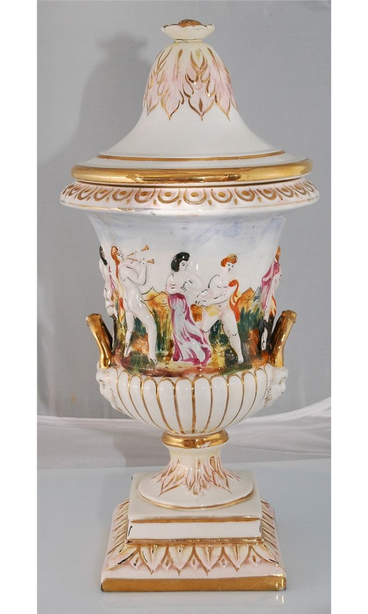 Stamped Keramos F.O Capodimonte Vase, 13" H x 7" W