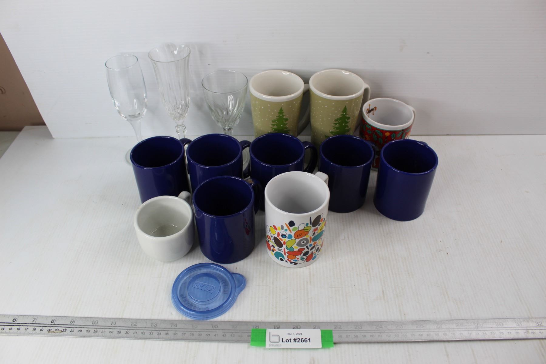(13) Various Coffee Cups/ Wine Glasses, Lid For Small Round Container