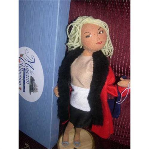 13" Woman in Red Annalee Museum Collection.Box label says 9750 Rogers Store Couple. The base has 1998 on it. The doll has her blue purse and appears to be all original. The box lid is torn and missing part of the end.I'm not sure ow the yellow yarn hair is to be fixed. Maybe it was just loose like it is now. By price is way below original price. The doll comes from a smoke free environment. Buyer to pay $15 for shipping, handling, and insurance. Thanks for viewing.