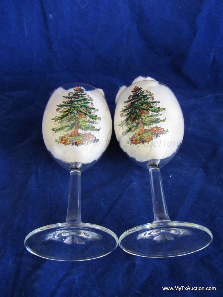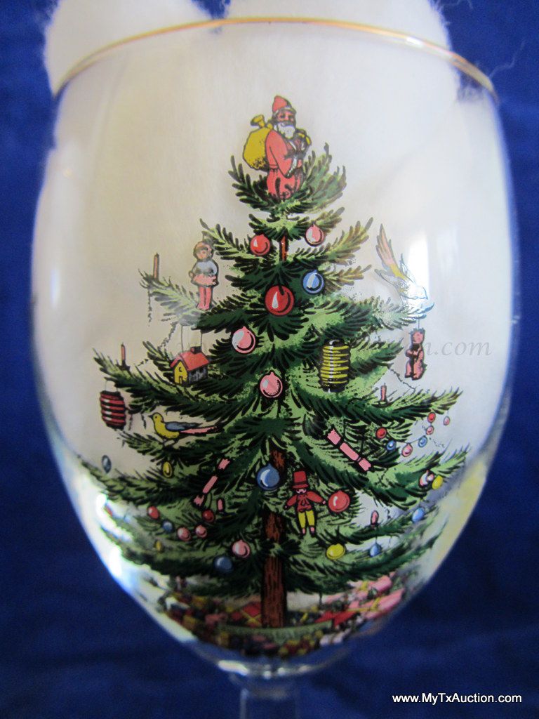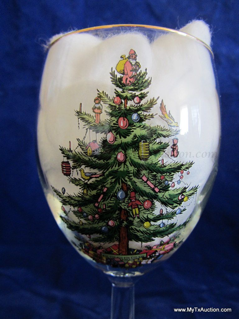 Spode 13oz. wine glasses are the perfect finishing touch to you Christmas Tree pattern. 13oz. Wine glass, measure 7.25" tall x 3" across the top and the base. Recommended: Hand Wash not in the box.
