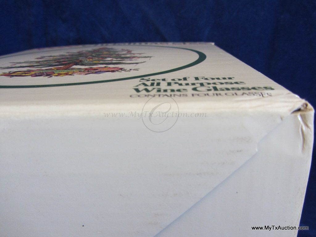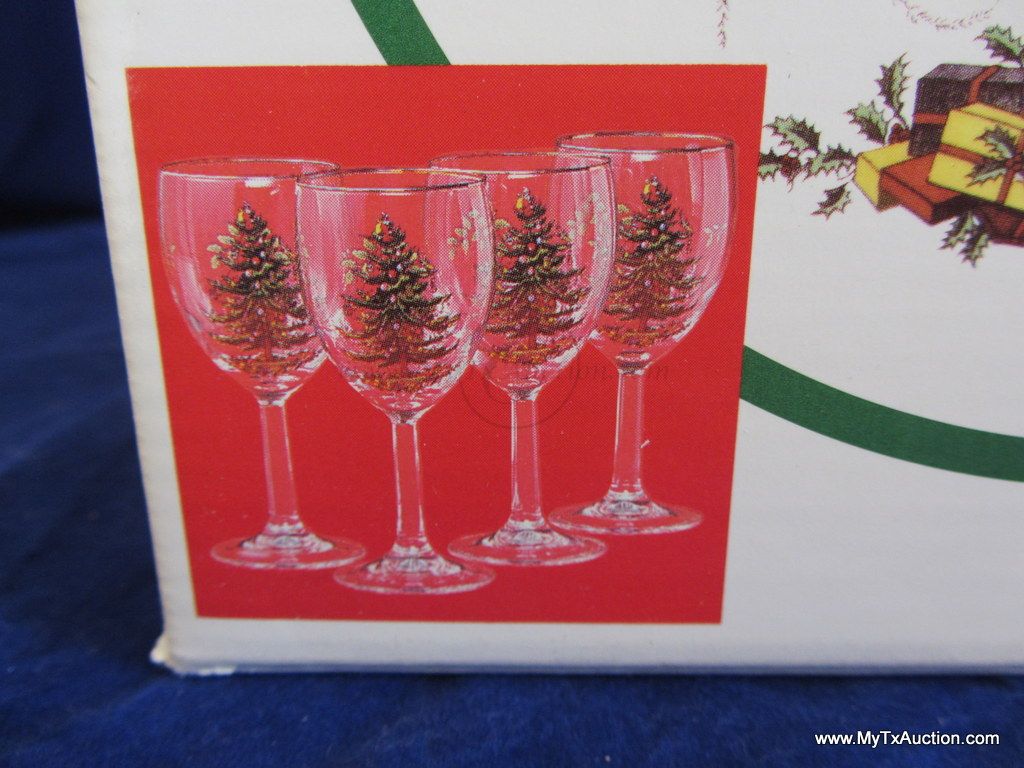 Spode 13oz. wine glasses are the perfect finishing touch to you Christmas Tree pattern. 13oz. Wine glass, measure 7.25" tall x 3" across the top and the base. Recommended: Hand Wash NIB