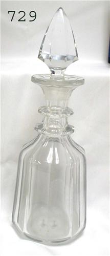13’ paneled decanter with spear point top – damage to stopper base and roughness on interior rim