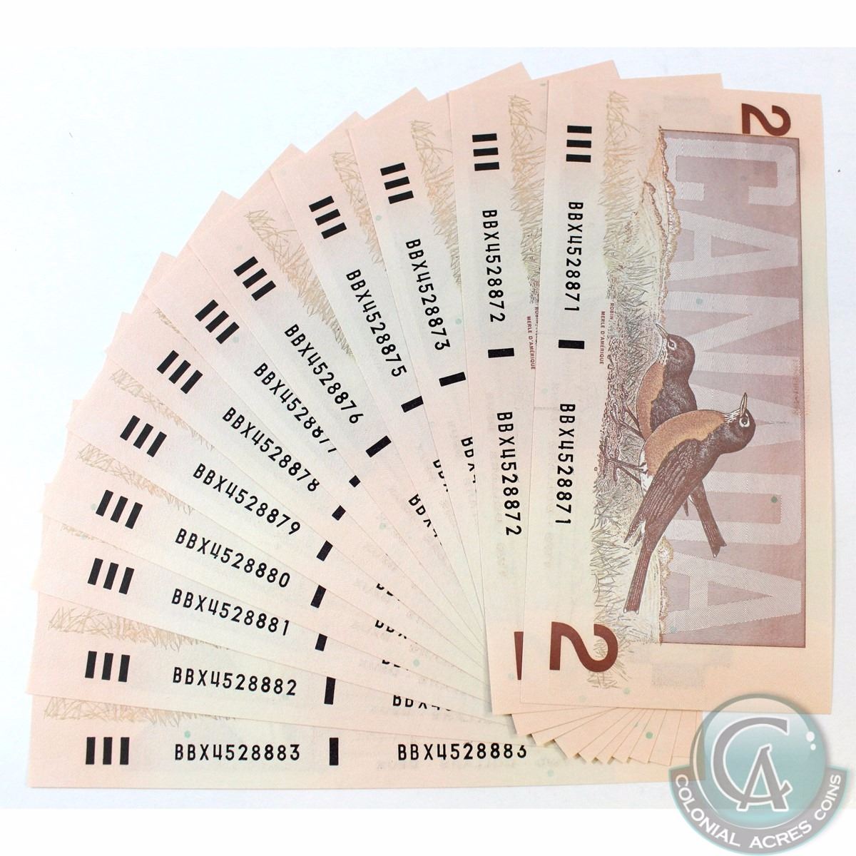13 x 1986 Replacement $2.00 Notes with Prefix BBX, Small B Variety and Consecutive Serial Numbers. 13 pcs