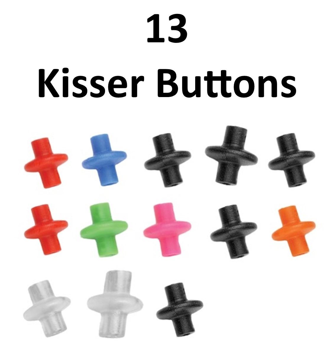 13 x Kisser Buttons, 3 x Saunders, 1-16 -18 Standard, 1-12-14 Standard Kiss X, 1-Slotted Kiss X 12-14, 7 x Pine Ridge Slotted, 1-Red, 1-Blue, 1-Black XL, 1-Black, 1-Orange, 1-Clear, 1-Clear XL, 3 x Pine Ridge Slide On, 1-Red, 1-Green, 1-Pink
