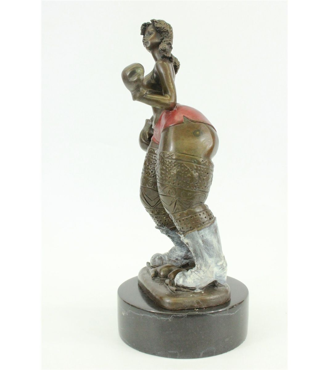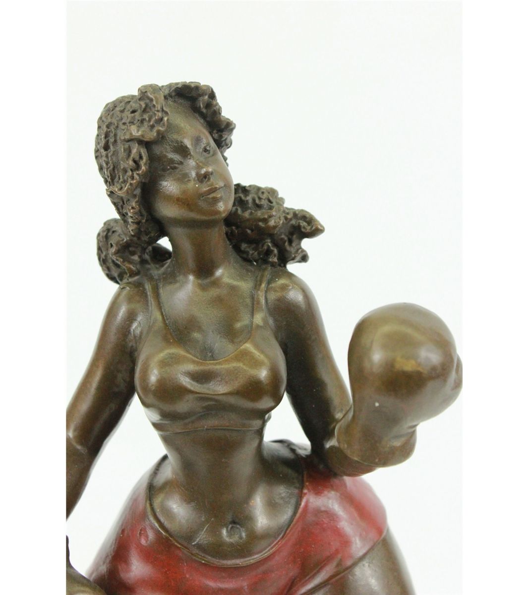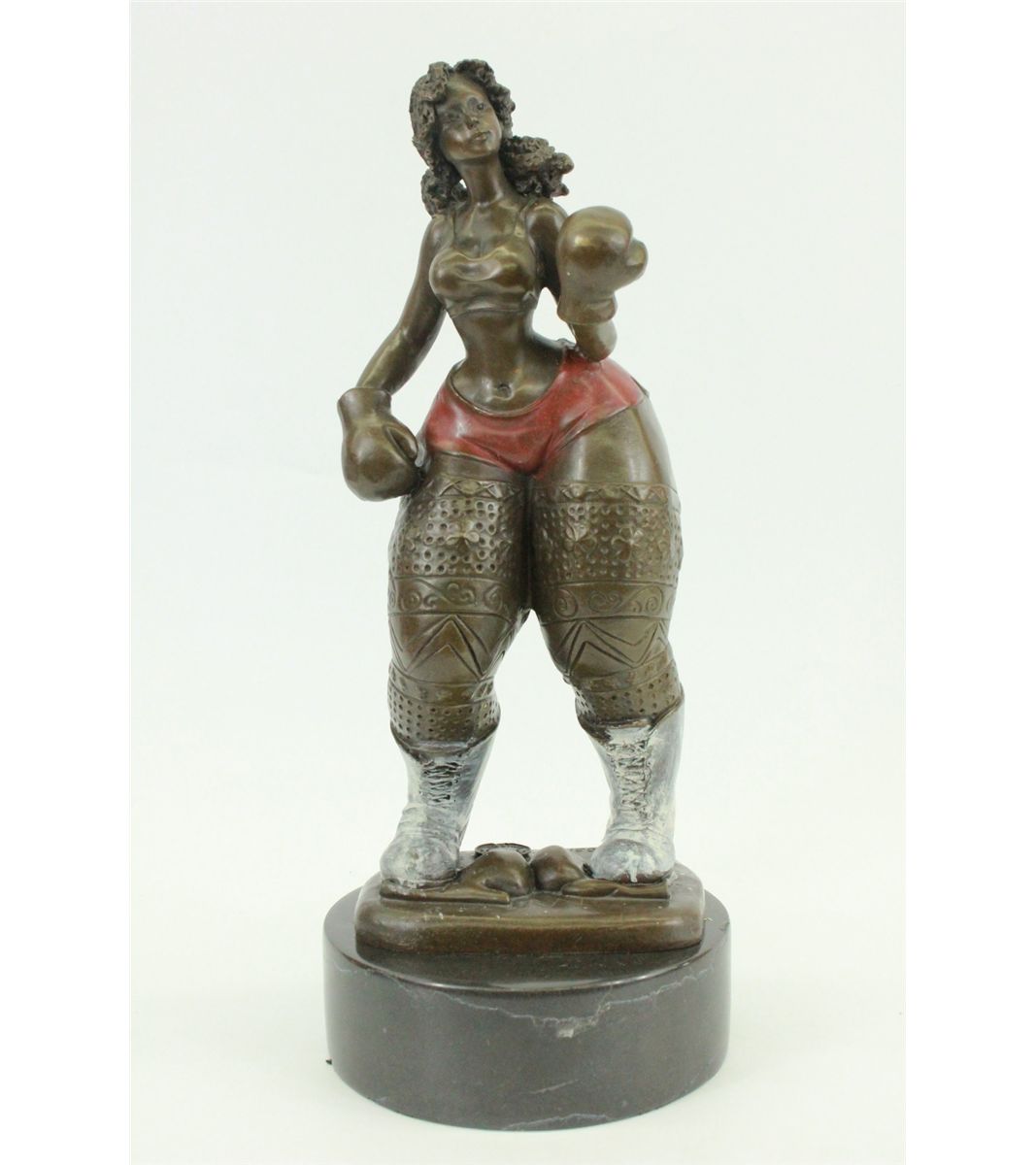 11XN245680 The Curvy Lady Boxer Is Ready To Make Her Next Fight In Her Complex Costume. The Composition Recalls The Classical Sense Yet Adopts A Modern Abstract Flair That Gives Her Body An Added Emphasis On Her Curvaceousness A Tribute To Botero. She Seems To Coyly Look Up As If Blushing Due To The Gushing Admiration She Gets From The Beholder Witnessing Her Body. The Bronze Sculpture Was Captured Using The Ancient Method Of Lost-Wax Casting And Finished With A Brown Patina Stain For Preservation. She Is Mounted Upon A Black Marble Base With The Artist Roelna'Ssignature...................SHIPPING USA: $20....HI, ALASKA, CANADA: $40...ALL OTHER COUNTRIES: $79