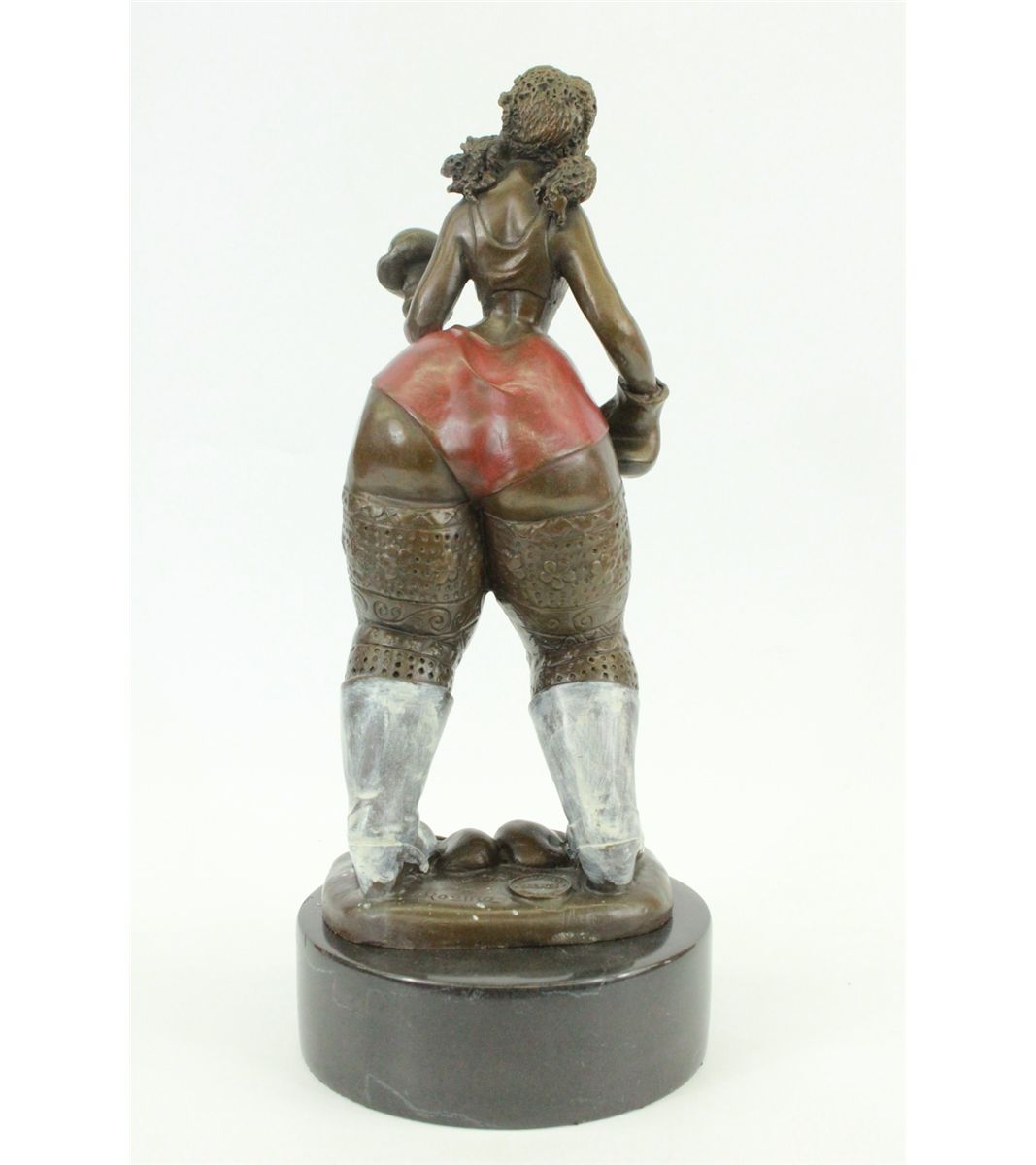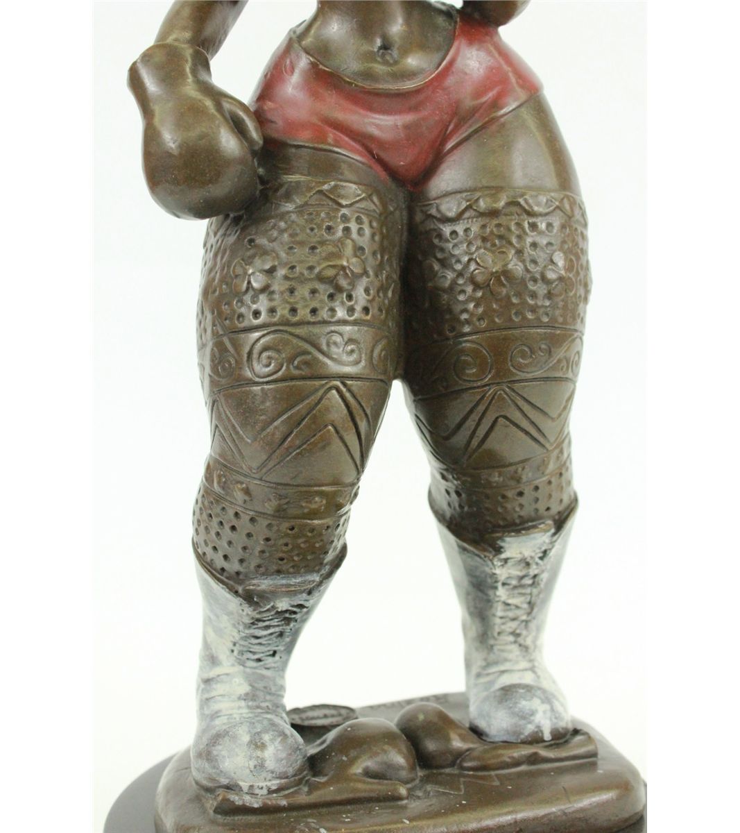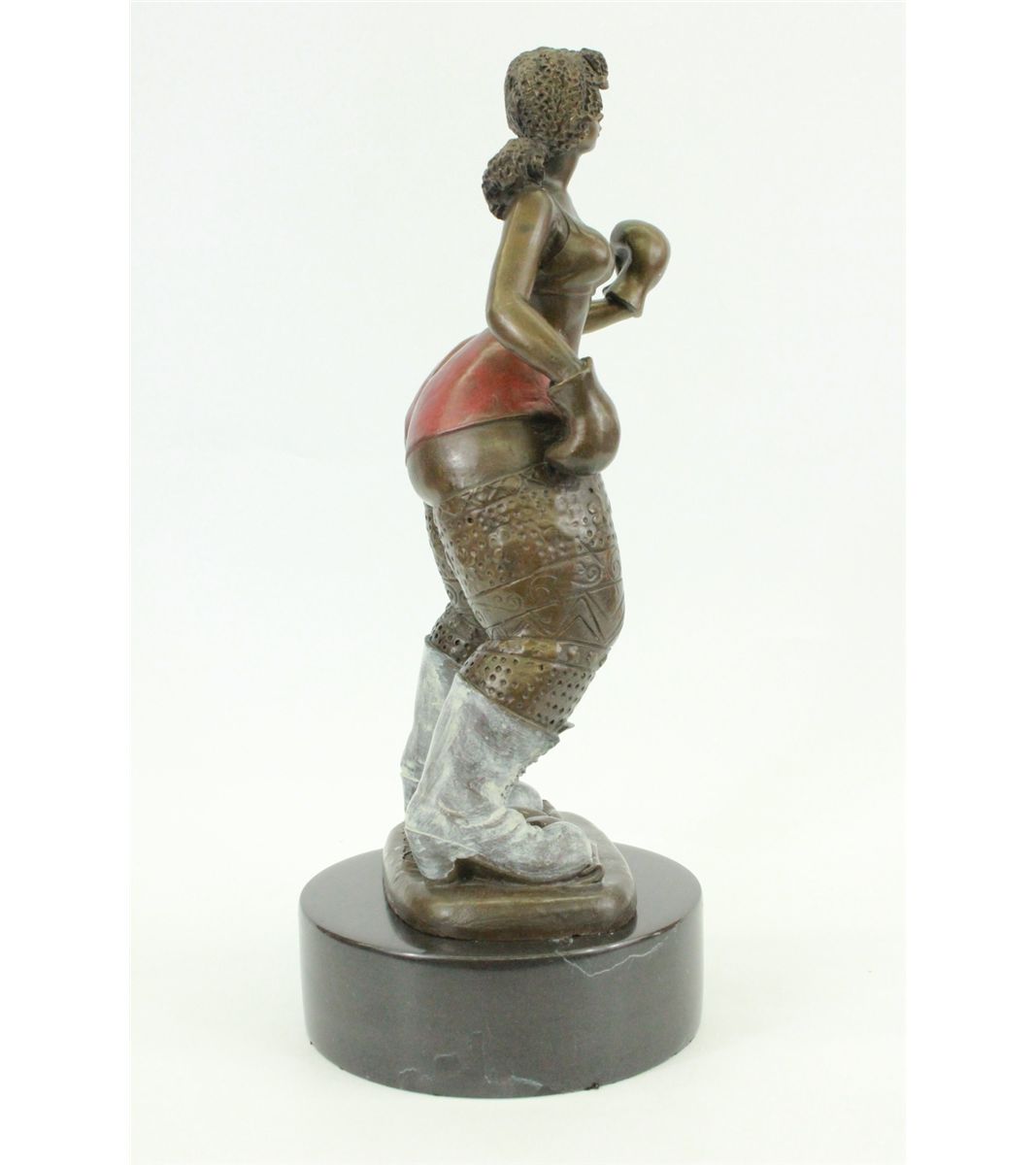 11XN245680 The Curvy Lady Boxer Is Ready To Make Her Next Fight In Her Complex Costume. The Composition Recalls The Classical Sense Yet Adopts A Modern Abstract Flair That Gives Her Body An Added Emphasis On Her Curvaceousness A Tribute To Botero. She Seems To Coyly Look Up As If Blushing Due To The Gushing Admiration She Gets From The Beholder Witnessing Her Body. The Bronze Sculpture Was Captured Using The Ancient Method Of Lost-Wax Casting And Finished With A Brown Patina Stain For Preservation. She Is Mounted Upon A Black Marble Base With The Artist Roelna'Ssignature...................SHIPPING USA: $20....HI, ALASKA, CANADA: $40...ALL OTHER COUNTRIES: $79
