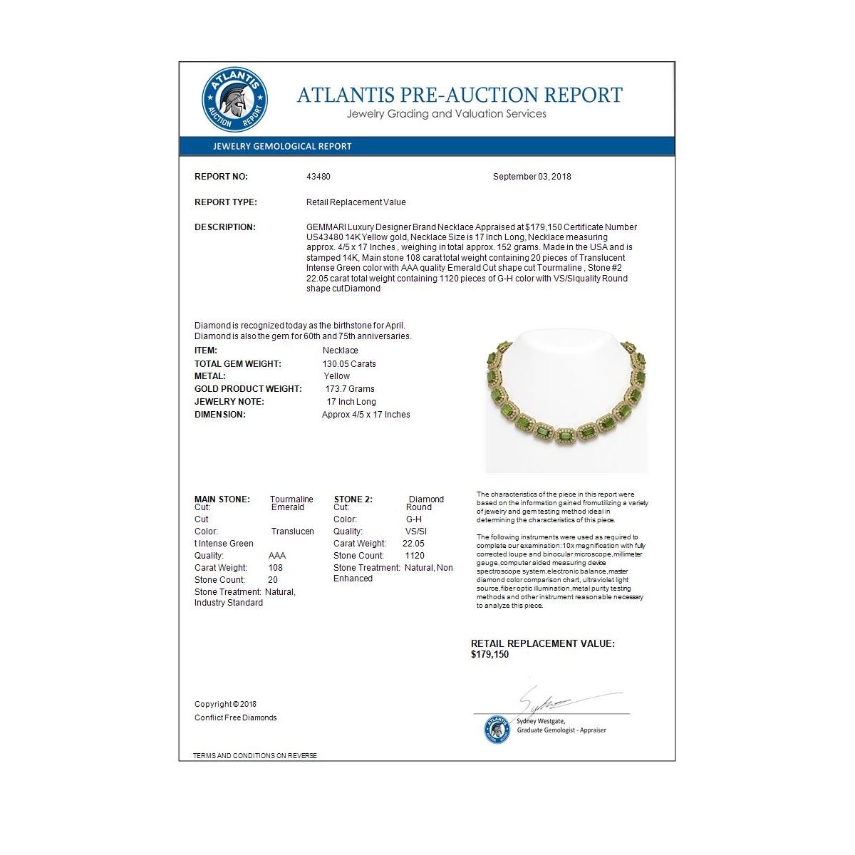 130.05 ctw Tourmaline & Diamond Necklace 14K Yellow Gold