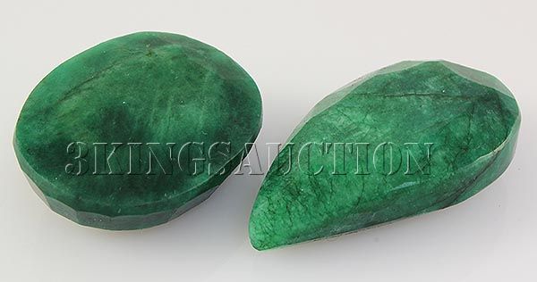 130.83ctw Faceted Loose Emerald Beryl Gemstone Lot of 2 **|**|** Mix Sizes Oval & Pear Shape Faceted Emerald Beryl Loose Gemstone ; MSRP: $1000