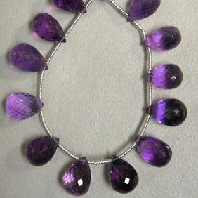AMETHYST BRIOLETTE STRAND. IT WEIGHTS 130 CTS AND EACH BEAD MEASURES 16x11 MM. INCLUDED