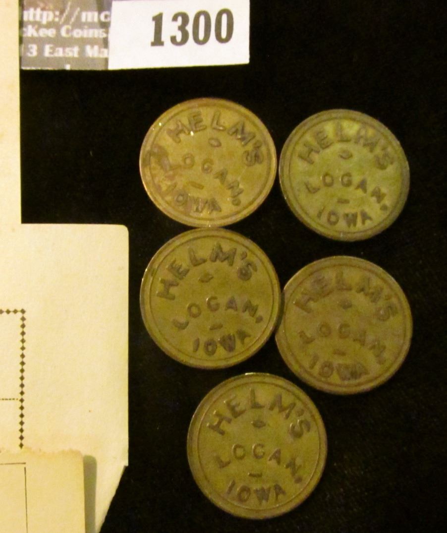 1300 _ (5) 10c Good in Trade Tokens from "Helm's/Logan, Iowa"; Pair of 1891 Receipts Xenia, Ohio sig