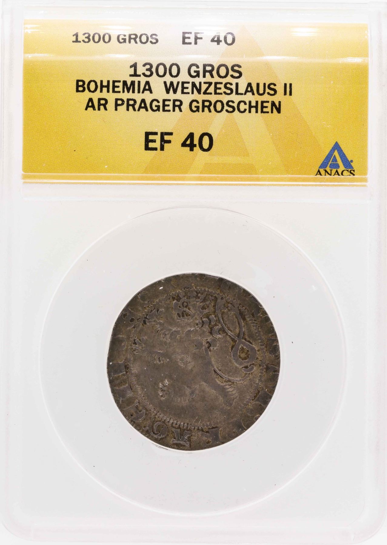 One 1300 Bohemia Wenzeslaus II AR Prager Groschen ANACS XF40.
