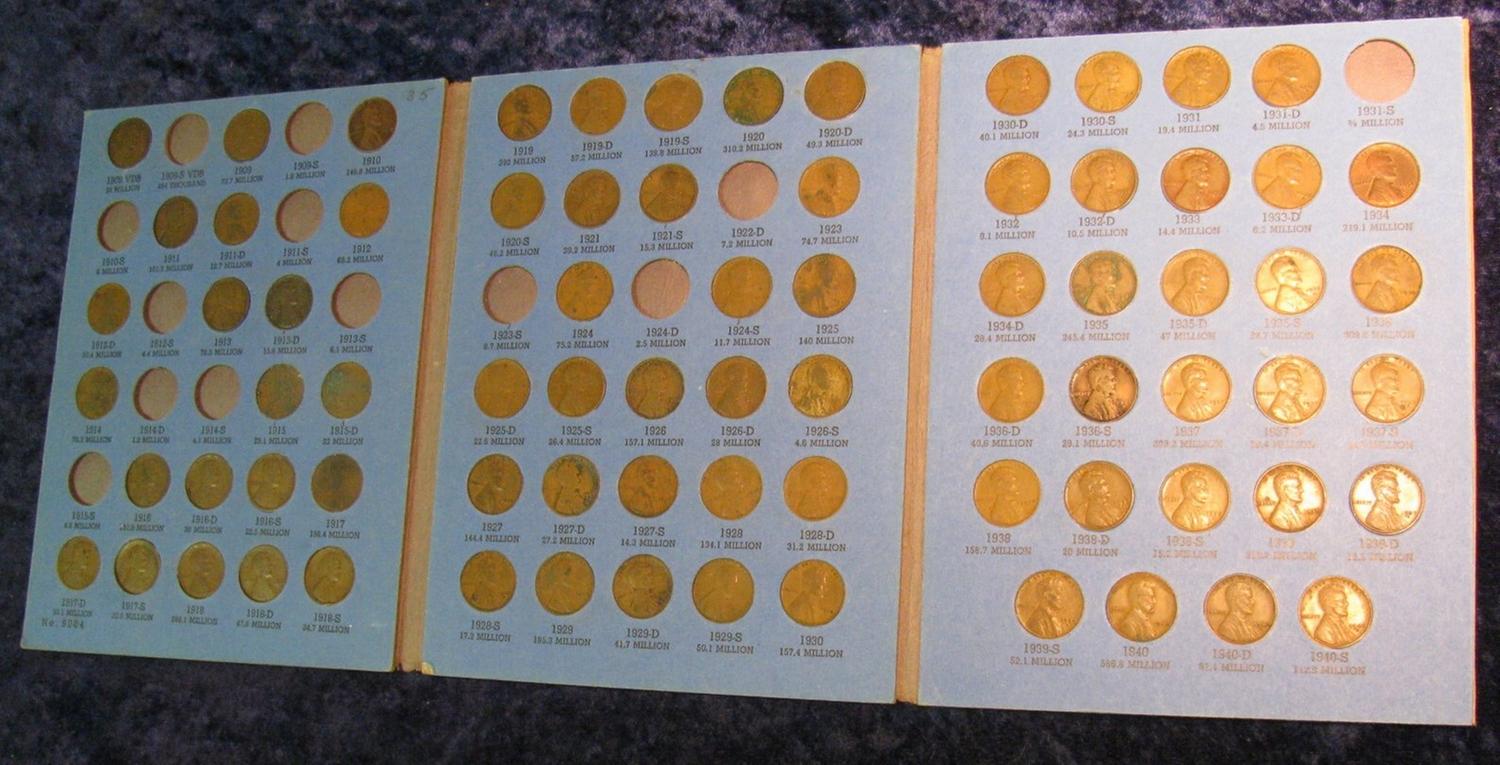 1301. 1909-40 Partial Set of Lincoln Cents with some keys.