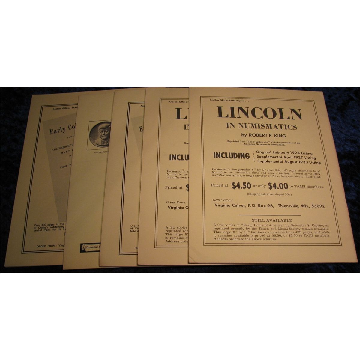1306. 1966 "Tams Journal" Magazines. Volume 6 no. 1-5. Includes some of the best research in the world on Coal Mine Scrip, Mardi Gras Medals, O.P.A. Tokens, & Washington Medals.