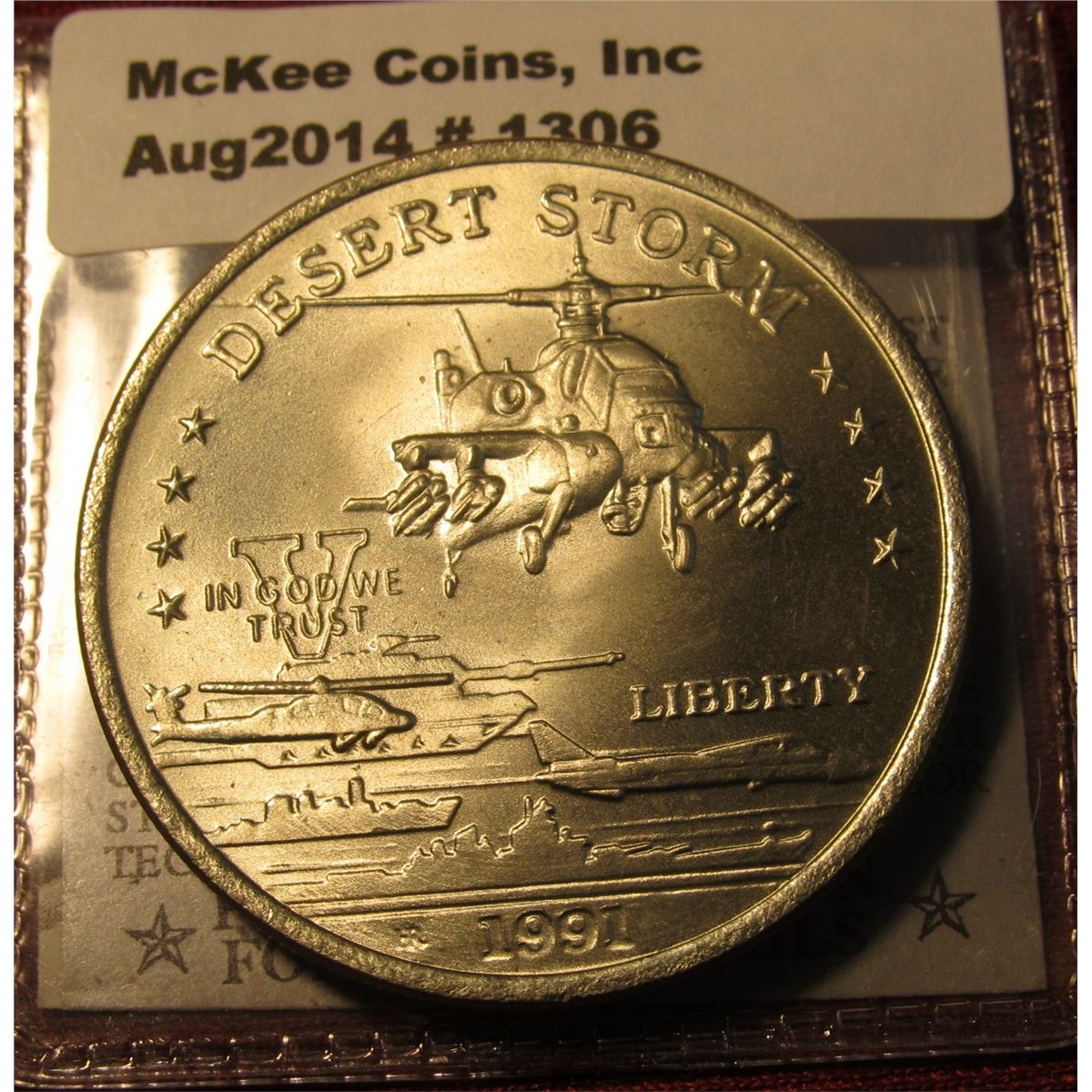 1306. 1991 Hutt River Province Desert Storm AH-64 Apache Attack Helicopter coin with paperwork