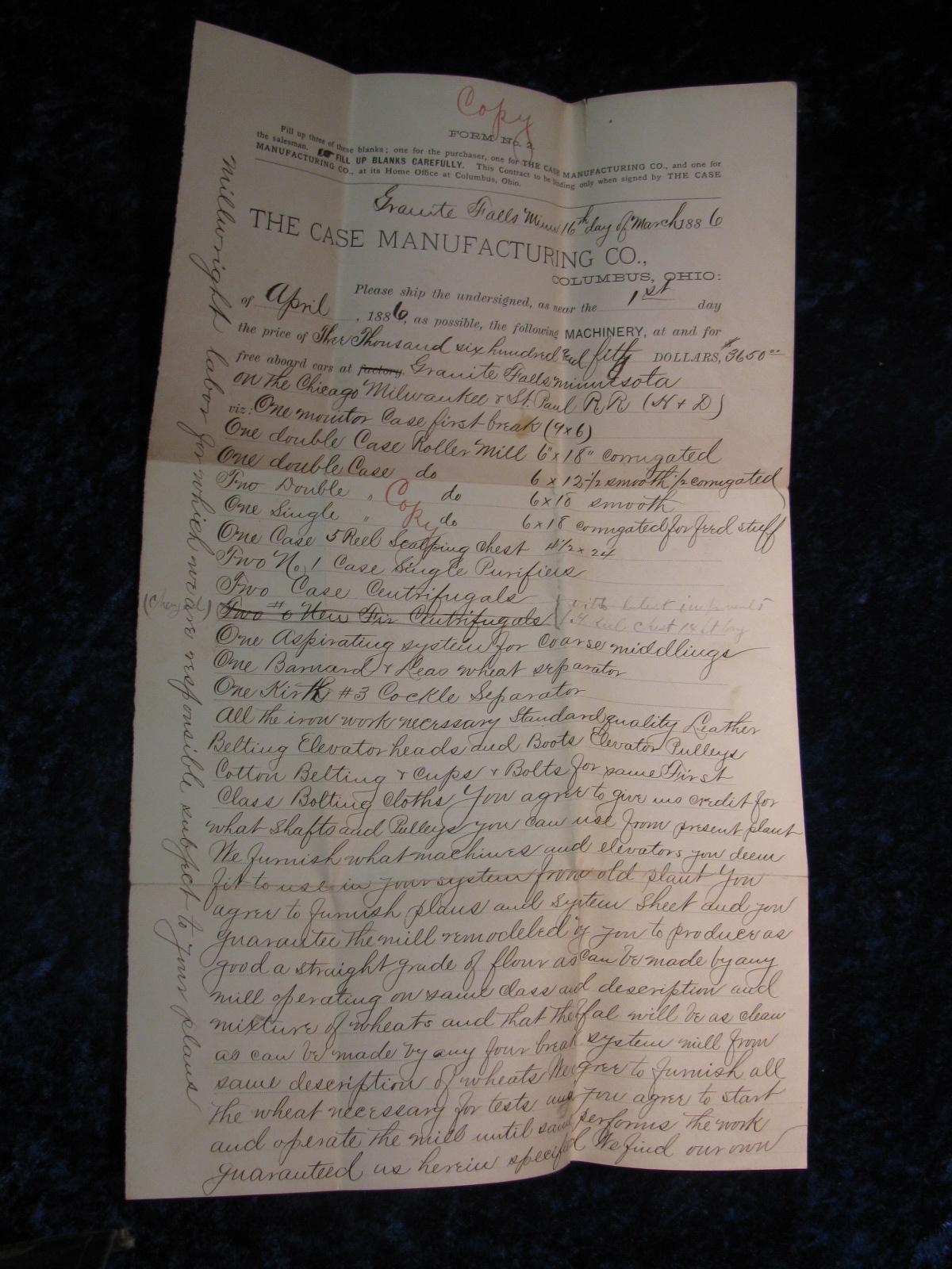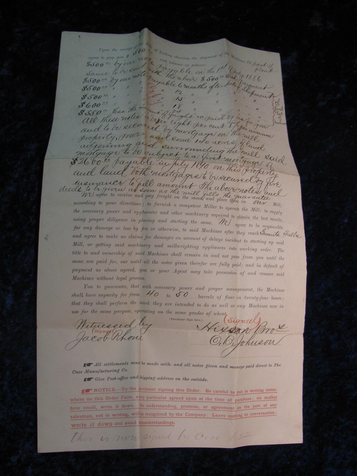 1308. 1886 Case Manufacture $3650.00 Promissory Note. Order for Parts.