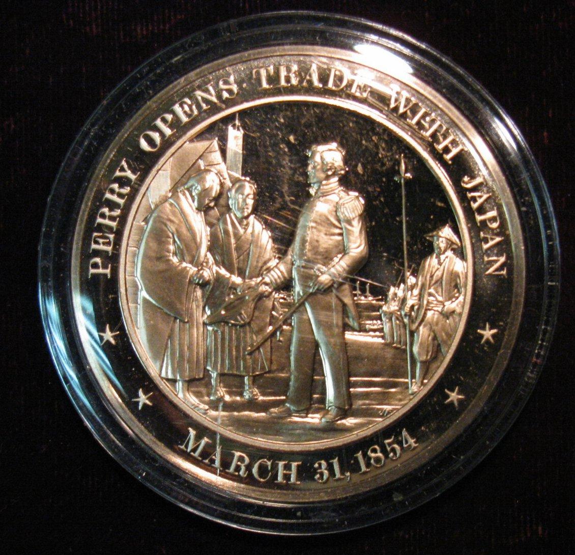 131. 1854 "Perry Opens Trade with Japan" Bronze Proof Medal. Encapsulated. 1 3/4" diameter.