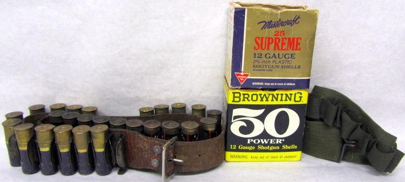 WITH TWO SHELL BELTS. ASSORTED SHOT SIZES AND HEADSTAMPS