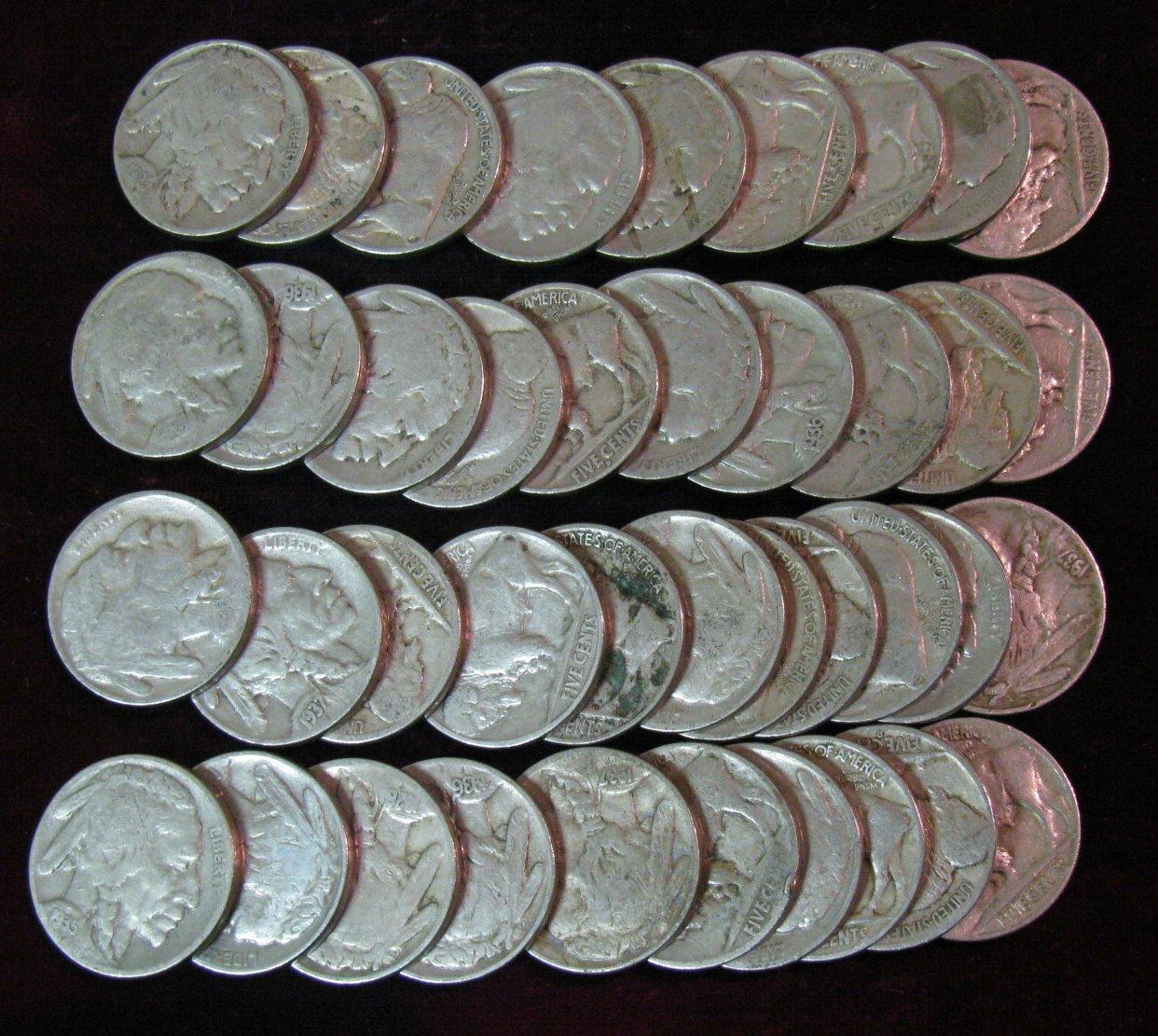 131. Roll of (40) Mixed Date Buffalo Nickels. Average circulated.