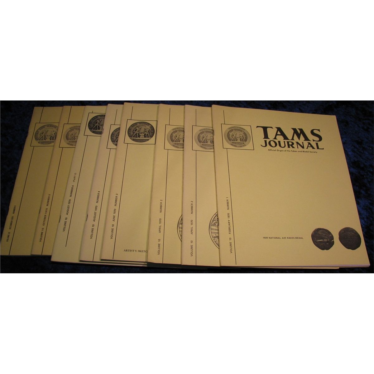 1310. 1970 "Tams Journal" Magazines. Volume 10 no. 1-6. Plus an extra No. 2. Includes some of the best research in the world on Air Race Medals, Wallingford Medals, Tams Medals, Apollo Medals, St. Louis World's Fair Info, "Grab it here" Stores, & Lone Star Pine Tokens.