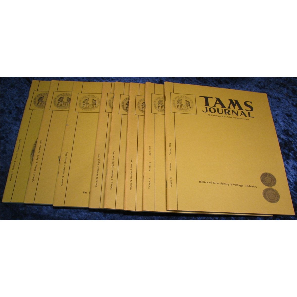 1312. 1972 "Tams Journal" Magazines. Volume 12 no. 1-6. Includes information on New Jersey's Village Industry, Swedish "Poletts"; Indian Trade Tokens, Scientific Awards, & Food Coupons.