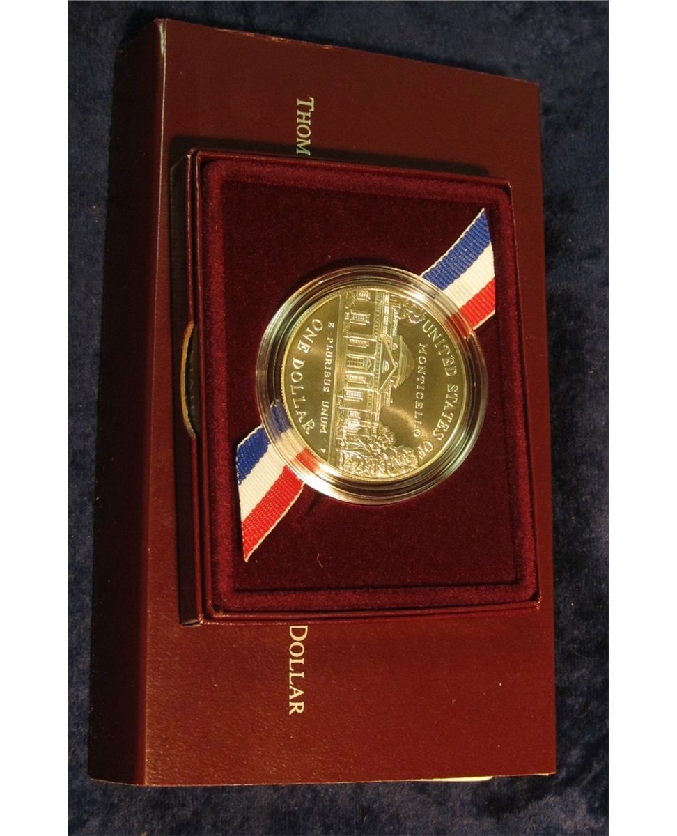 1313. 1743-1793 Thomas Jefferson Commemorative Silver Dollar. Gem BU. Original as issued.