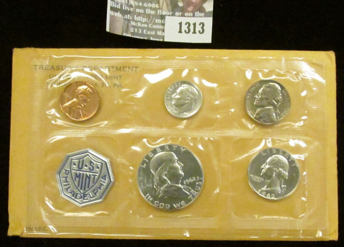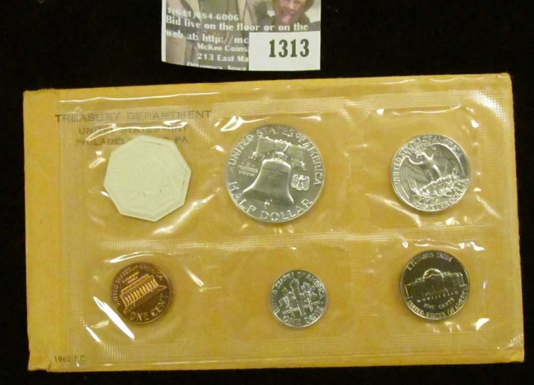 1962 U.S. Proof Set in original flat pack and cellophane as issued. (5 pcs.).