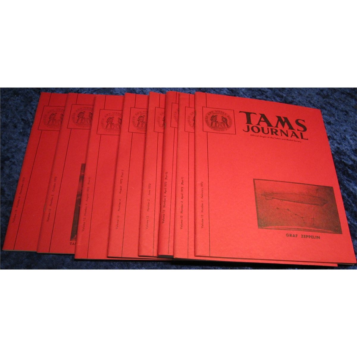 1313. 1973 "Tams Journal" Magazines. Volume 13 no. 1-6. Includes information on the Graf Zeppelin, Nevada Tokens, Texas Trade Tokens, Pony Express, and American Game Counters.