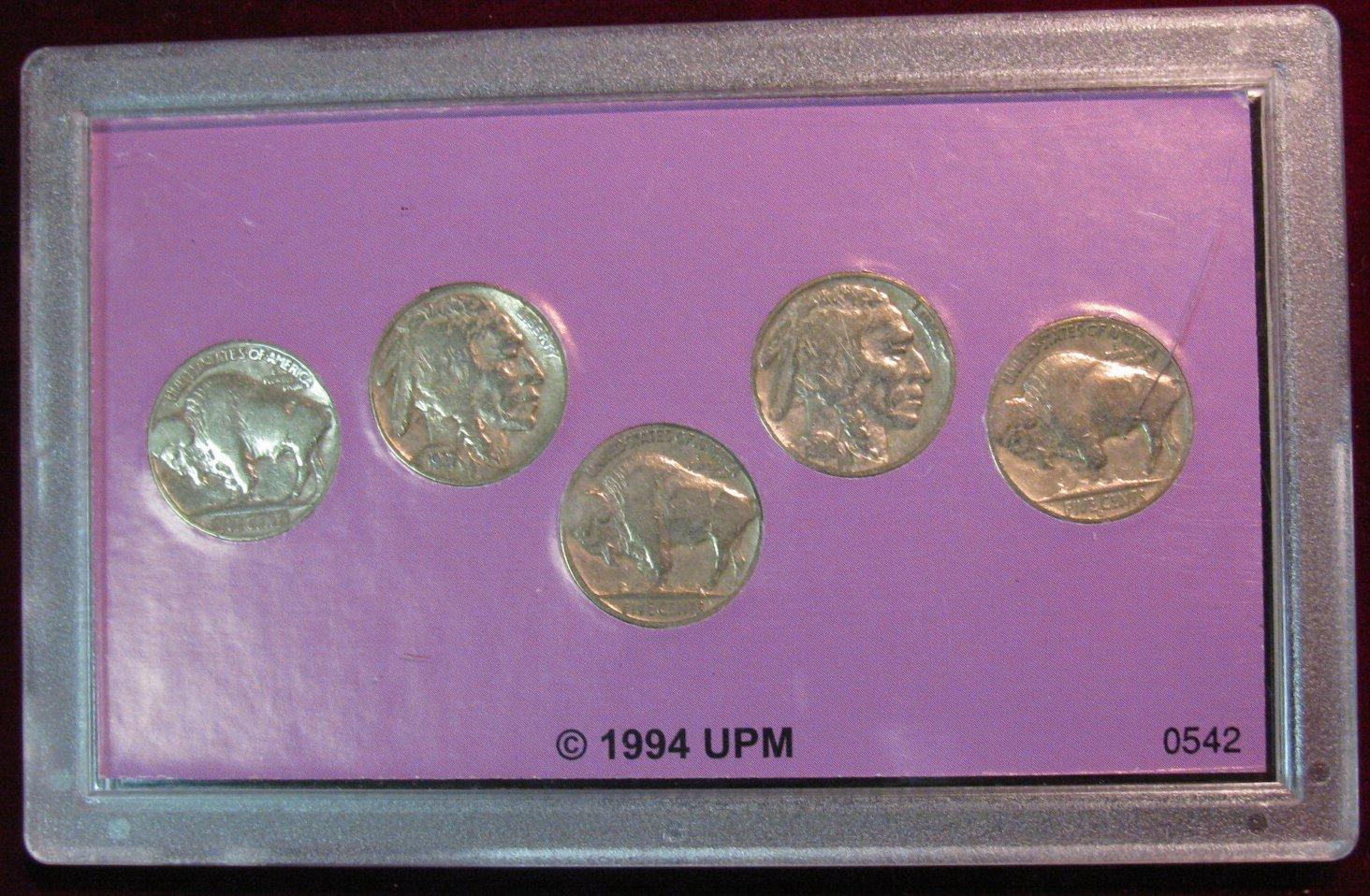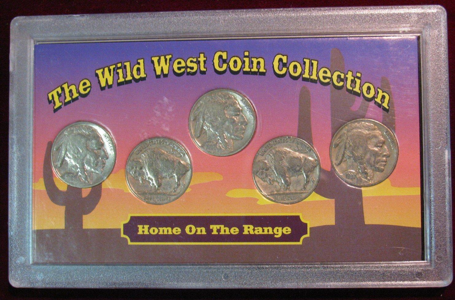 1313. The Wild West Coin Collection. 5-Buffalo Nickels in a Nice Display Case.