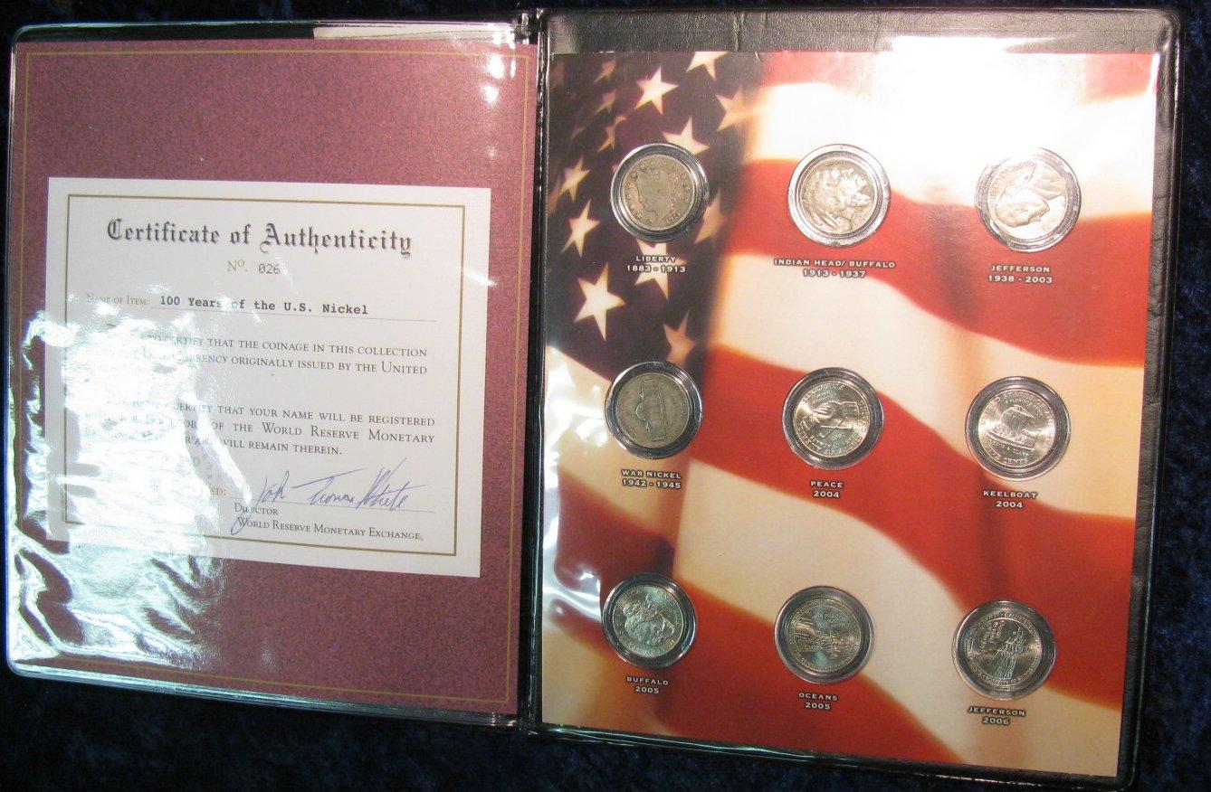 1314. 100 Years of The Nickel Collection. Liberty, Buffalo, Jeffersin, Jefferson Silver & 2004-06 Se