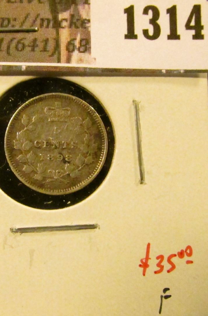 1314 . 1898 Canada Five Cent Silver, F, value $35