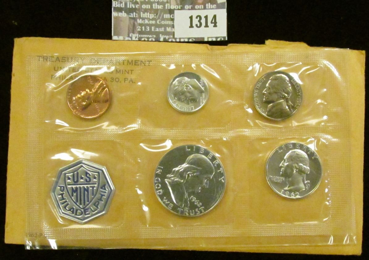 1962 U.S. Proof Set in original flat pack and cellophane as issued. (5 pcs.).