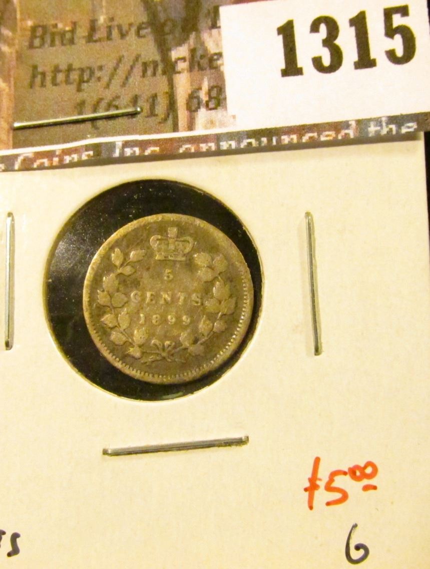 1315 . 1899 Canada Five Cent Silver, G, value $5