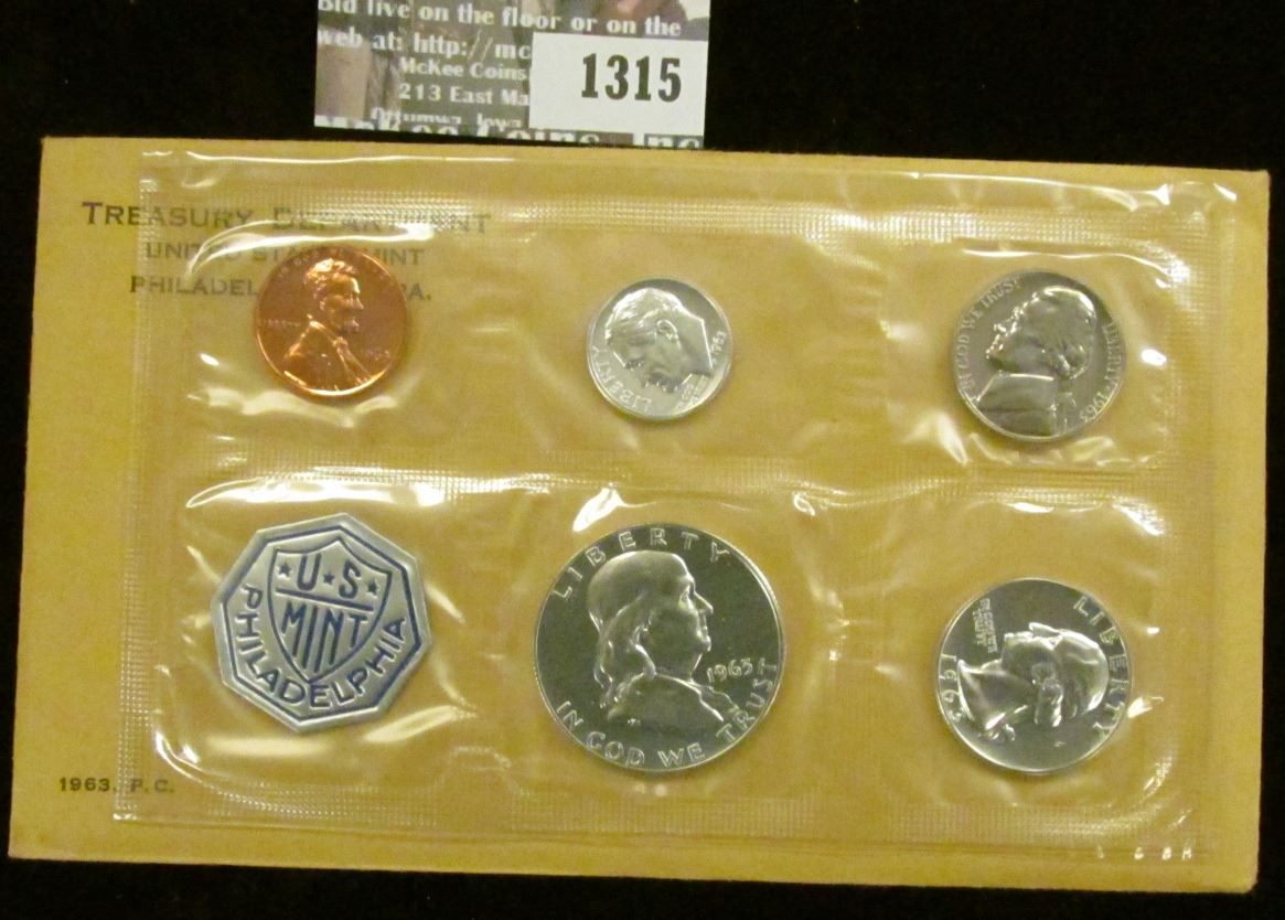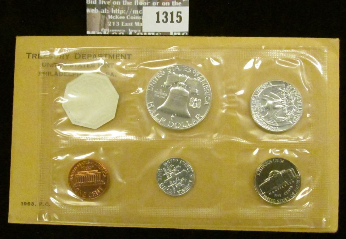 1963 U.S. Proof Set in original flat pack and cellophane as issued. (5 pcs.).
