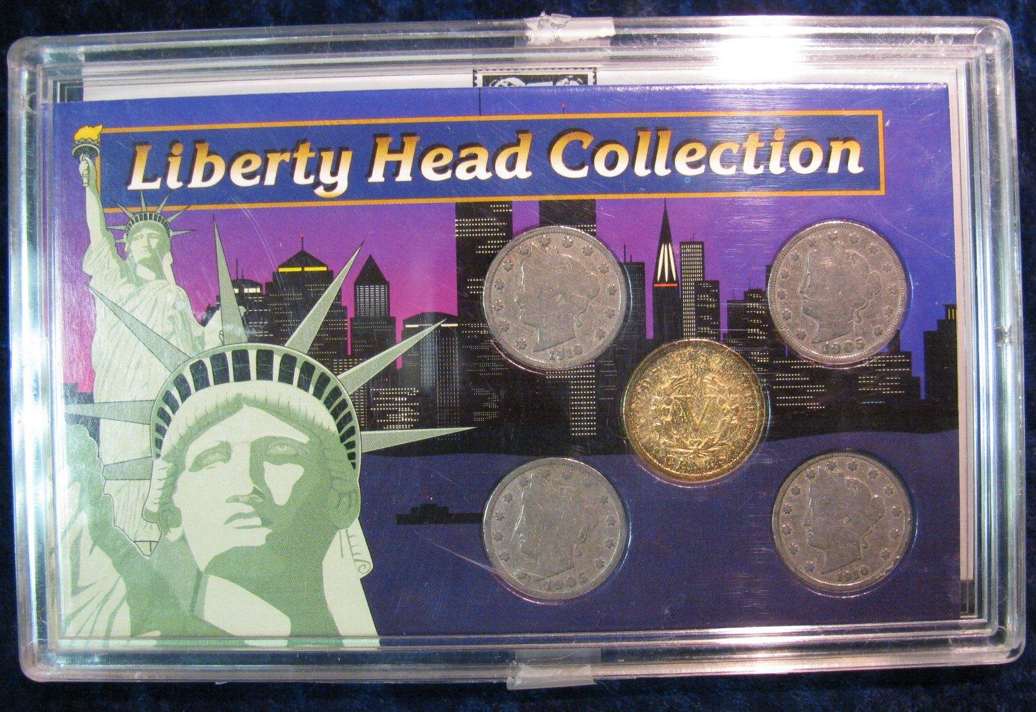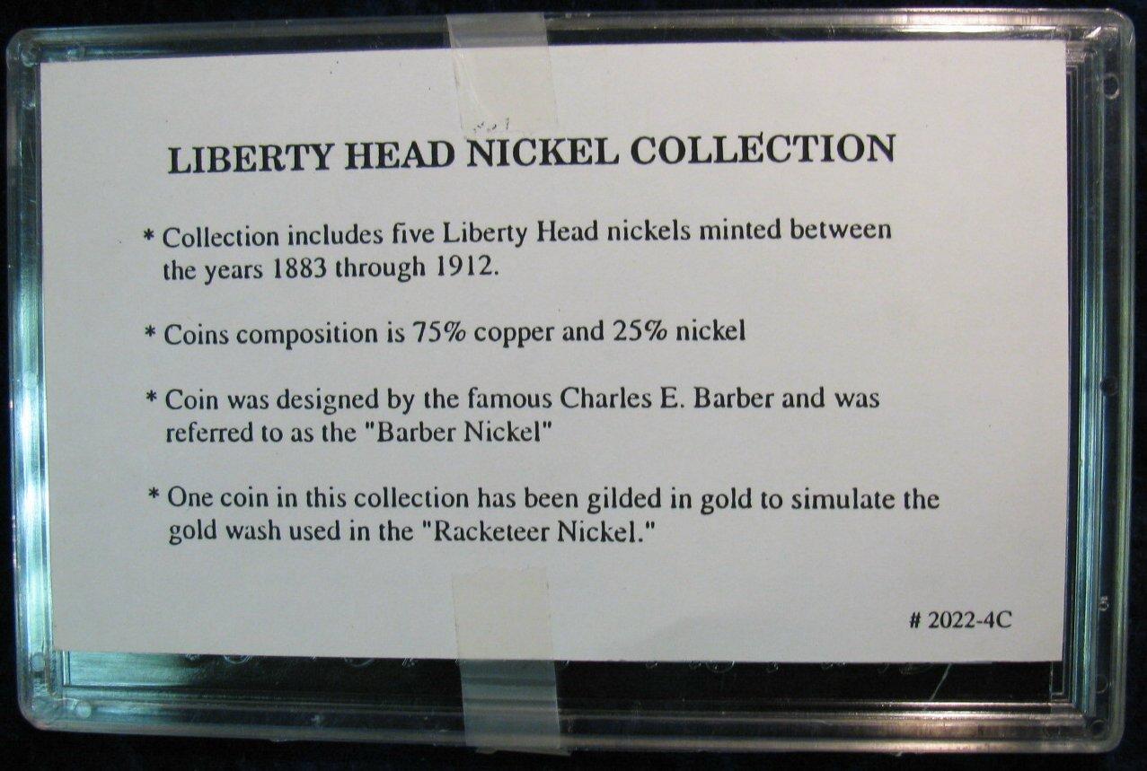 1315. Liberty Head Collection. 5-Liberty Head Nickels one being Gold Washed to Represent a Racketeer Nickel.