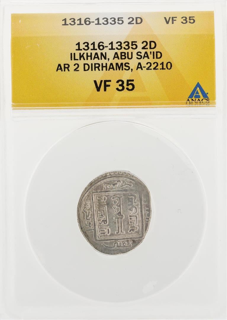 1316-1335 2D Ilkhan ABU SA ID AR 2 Dirhams A-2210 Coin ANACS VF35