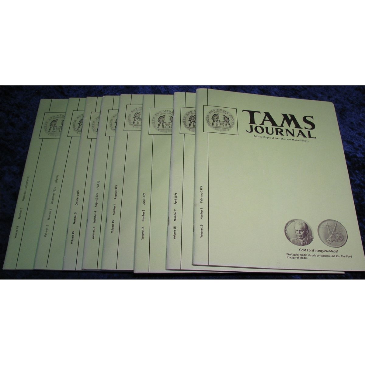 1316. 1975 "Tams Journal" Magazines. Volume 15 no. 1-6. Includes information on Inaugural medals, Civil War Tokens, Amusement and Vending Tokens, Mavericks, & Rochester Potpourri.