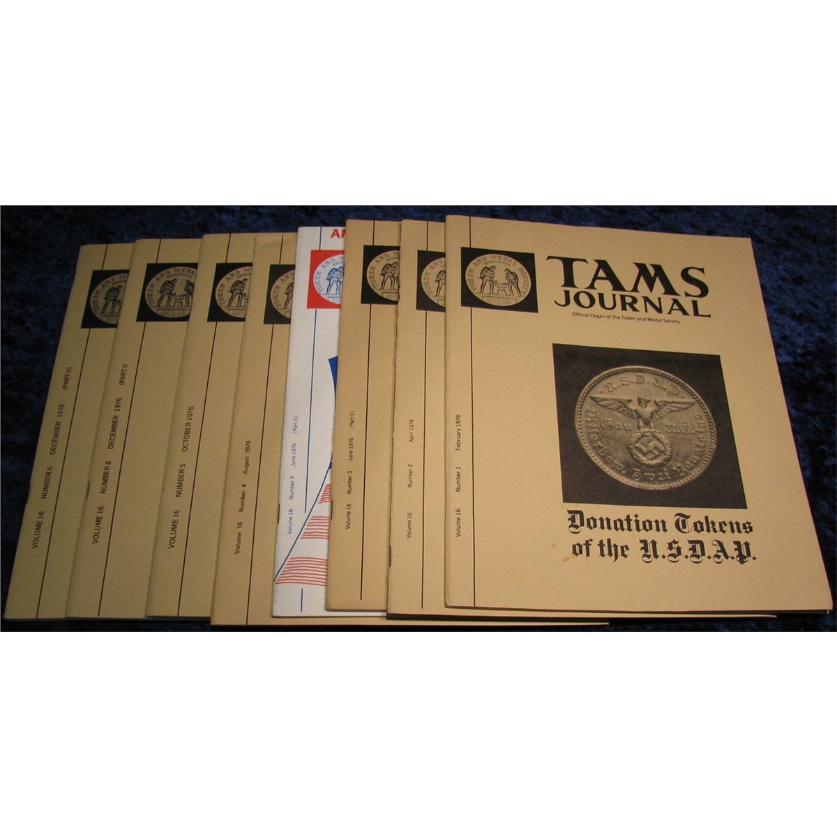 1317. 1976 "Tams Journal" Magazines. Volume 16 no. 1-6. Includes information on Donation Tokens, Counterstamped Coins, American Legion Medals, Amusement Tokens, Nevada Medals, & Amusement tokens of the Minneapolis St. Paul area.