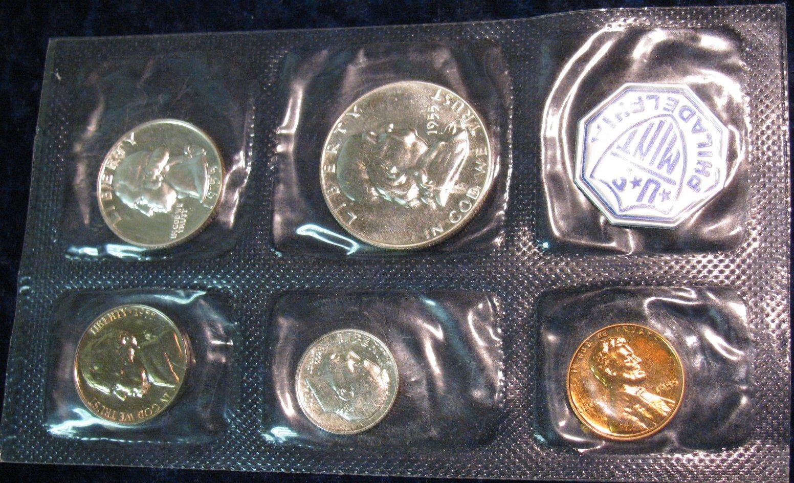 1318. 1955 U.S. Proof Set. Flat pack in original cellophane. No envelope. The Washington Quarter exhibits full Deep Mirror Proof Cameo.
