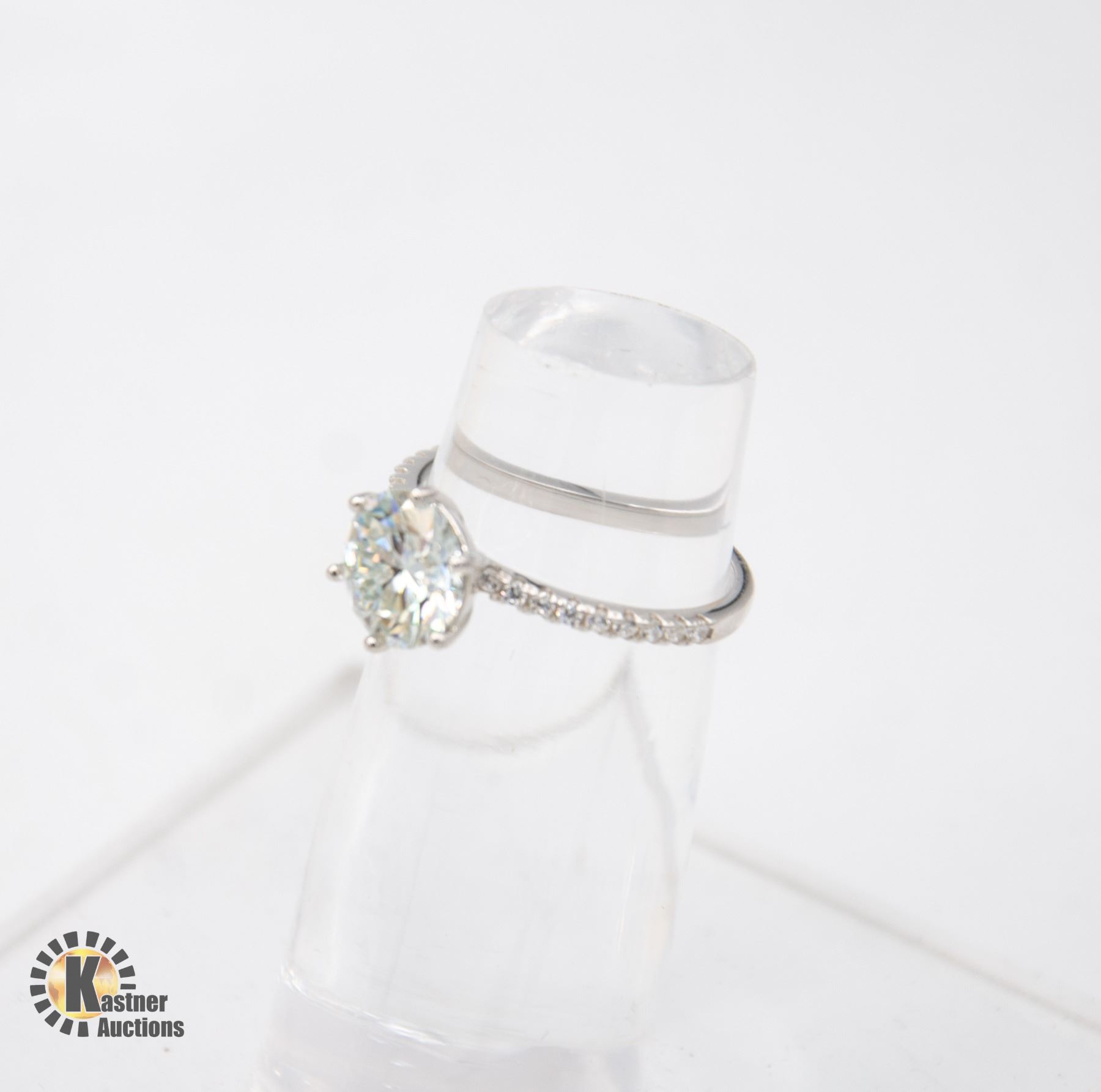 MOISSANITE STONE VVS D COLOR SET IN CENTER OF 6 CLAW HEAD SET IN 925 SILVER RING SIZE 6 COMES WITH GIFT BOX