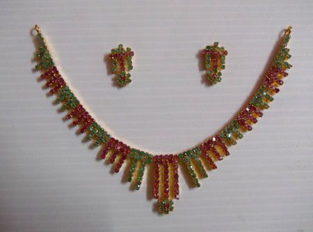 132.35 CTW GOLD PLATED EMERALD/RUBY NECKLACE AND EARRIN **|**|** 132.35 CTW GOLD PLATED EMERALD/RUBY NECKLACE AND EARRING SET STERLING SILVER ; MSRP: $1325