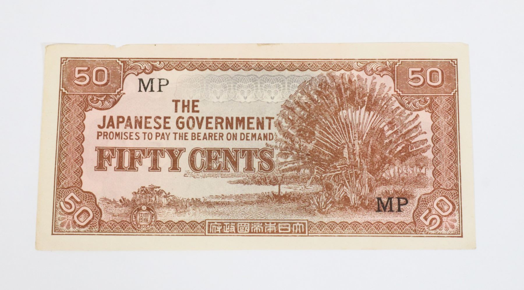 FIFTY CENTS OCCUPATION EMPIRE OF JAPAN WORLD WAR TWO BANK NOTE PAPER MONEY BILL 1940'S