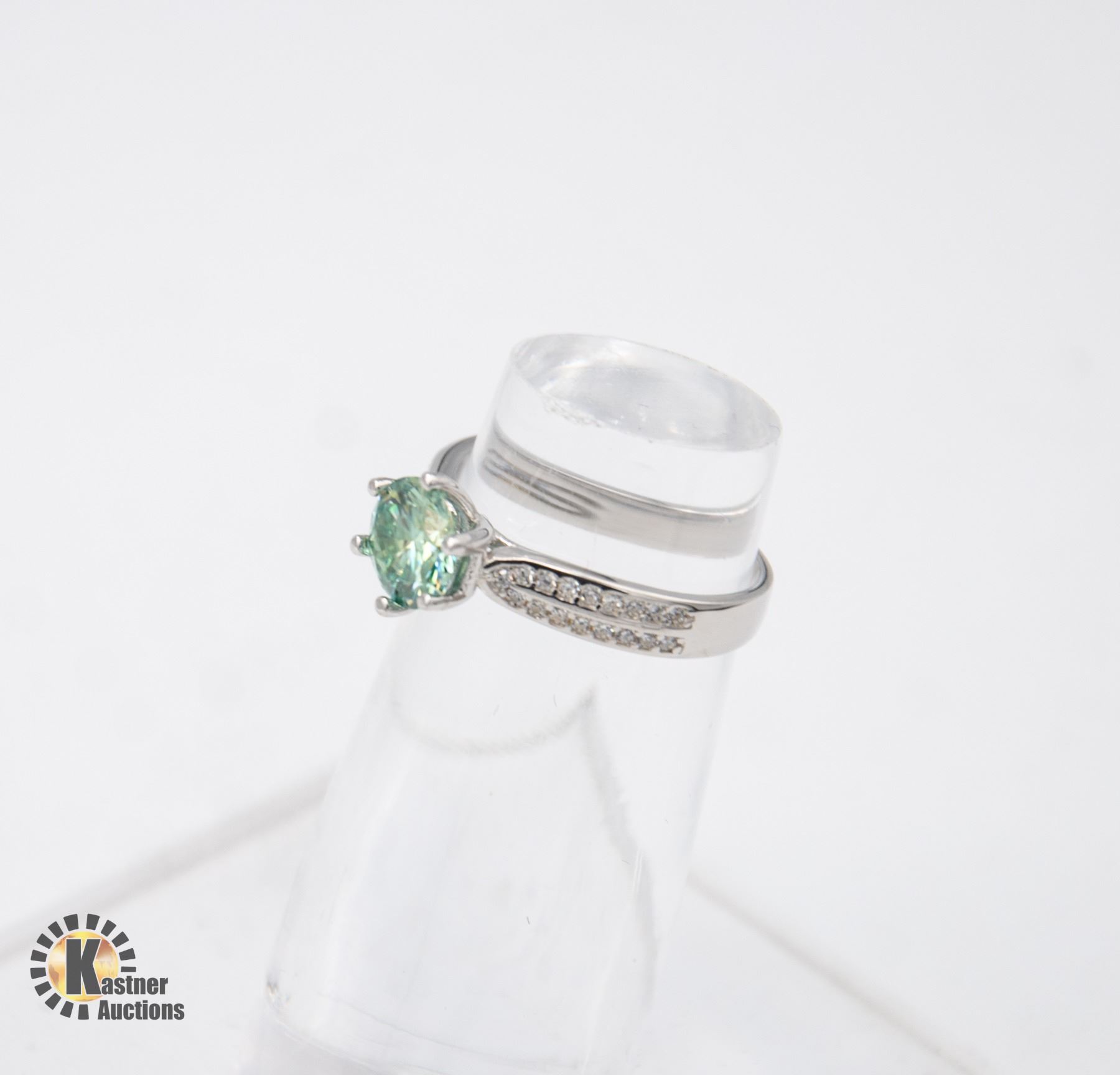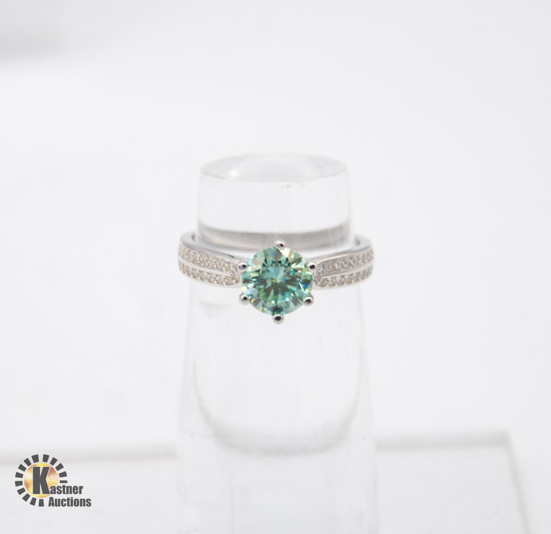 MOISSANITE STONE VVS BLUE COLOR SET IN CENTER OF 6 CLAW HEAD SET IN 925 SILVER RING SIZE 5 COMES WITH GIFT BOX