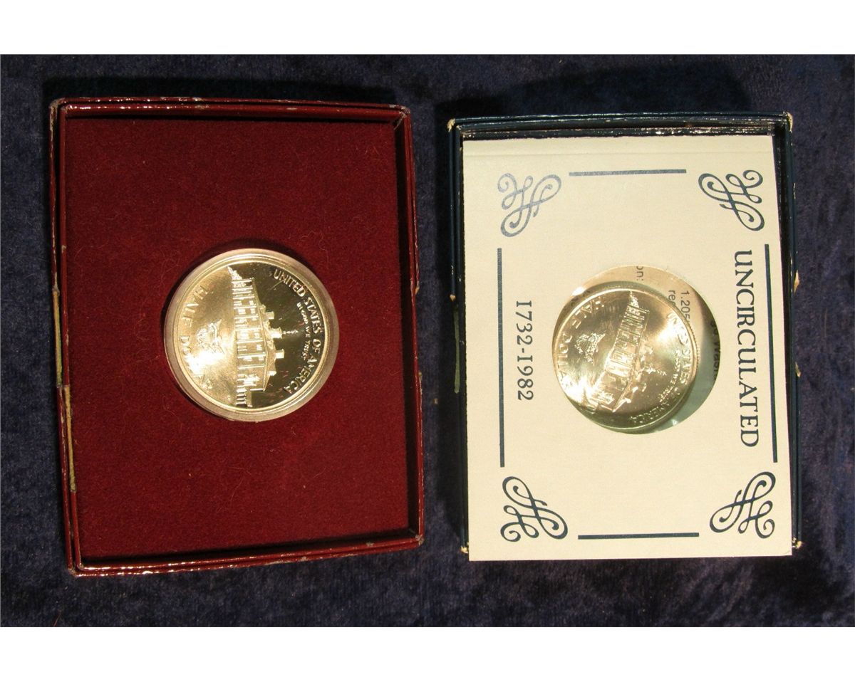 1321. 1982 D & S U.S. George Washington Commemorative Silver Half Dollars in original boxes as issued.