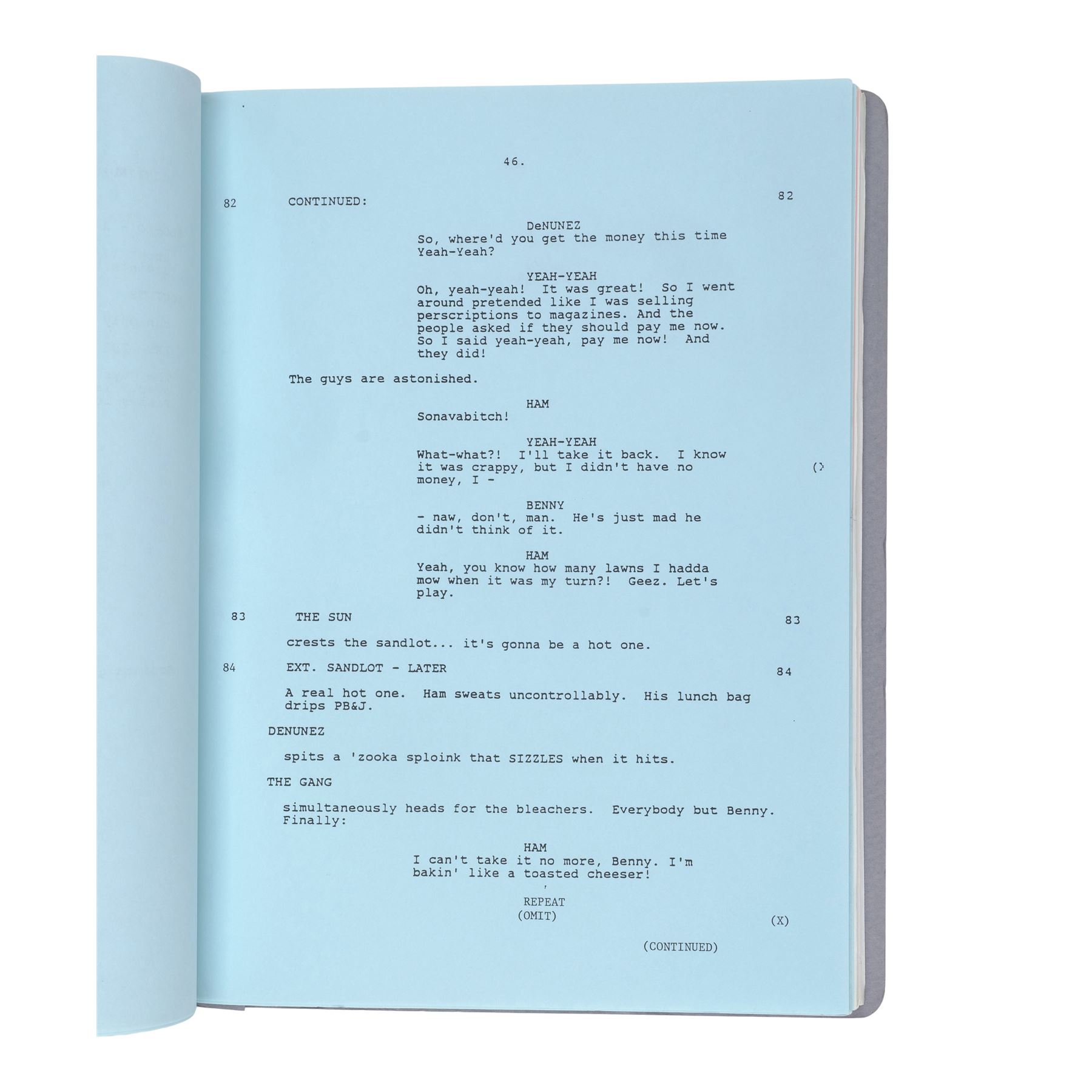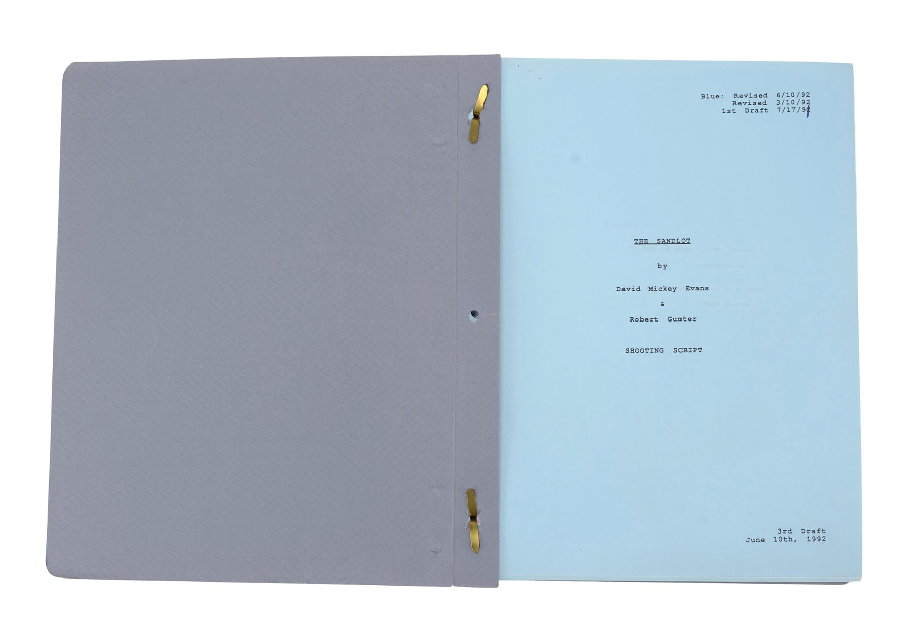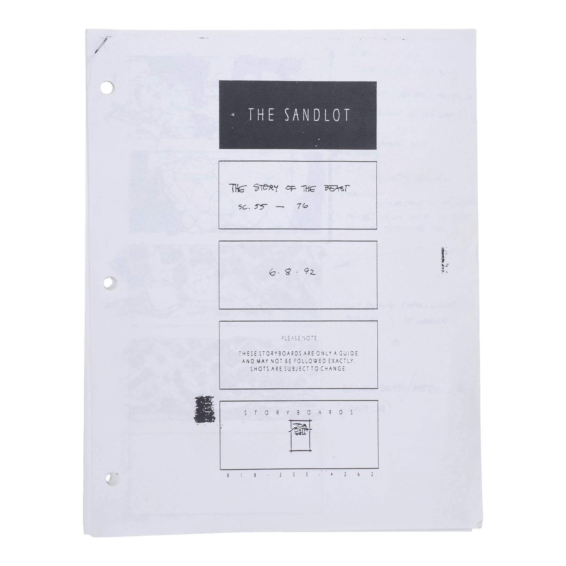 THE SANDLOT (1993) - Bound Third Draft Shooting Script and "Story of the Beast" Storyboards - A script and storyboards from the production of David Mickey Evans' The Sandlot. In the film, a group of neighborhood boys playing in their local "sandlot" baseball field lost a Babe Ruth-autographed baseball in a nearby junkyard that housed "The Beast."